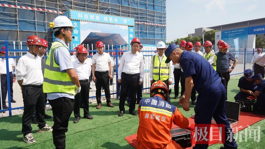 近日,中建一局华中智能飞行器产业基地一期项目举办第八届“仲夏思齐”在施项目消防安全观摩会暨智慧消防设备设施应用交流会,积极贯彻2025年国家安全生产月“人人讲安全、个个会应急——查找身边安全隐患”主题理念。