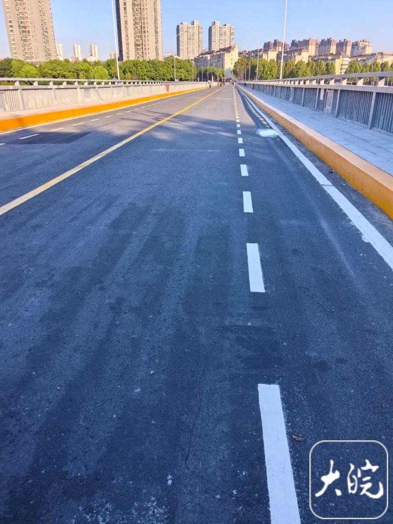 大皖新闻记者现场看到,云露桥两头的隔离物已经撤掉,桥面恢复畅通,人行道地面砖和立面砖已得到更换并重新上漆,部分破损和有裂纹的桥面和伸缩缝也已得到更换和修补,路面上的标识也重新画好。