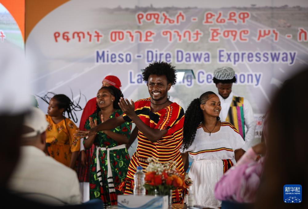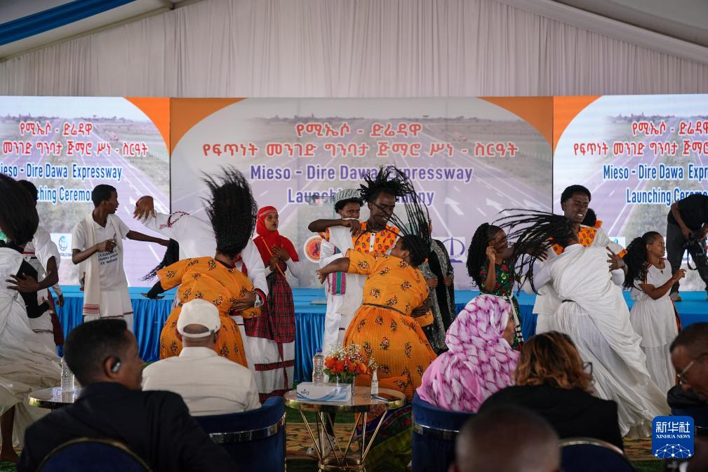8月19日,中国企业承建的埃塞俄比亚米埃索至德雷达瓦高速公路项目在埃塞第二大城市德雷达瓦举行开工仪式,演员在仪式上进行表演。新华社记者 韩旭 摄