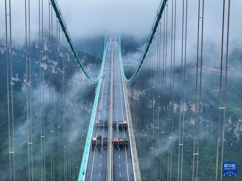 新华社贵阳8月21日电(记者 欧东衢、向定杰)21日,随着18辆总载重630吨的卡车分批行驶上桥,停放至预先划定的停靠点,在建世界第一高桥——贵州花江峡谷大桥正式启动荷载试验。