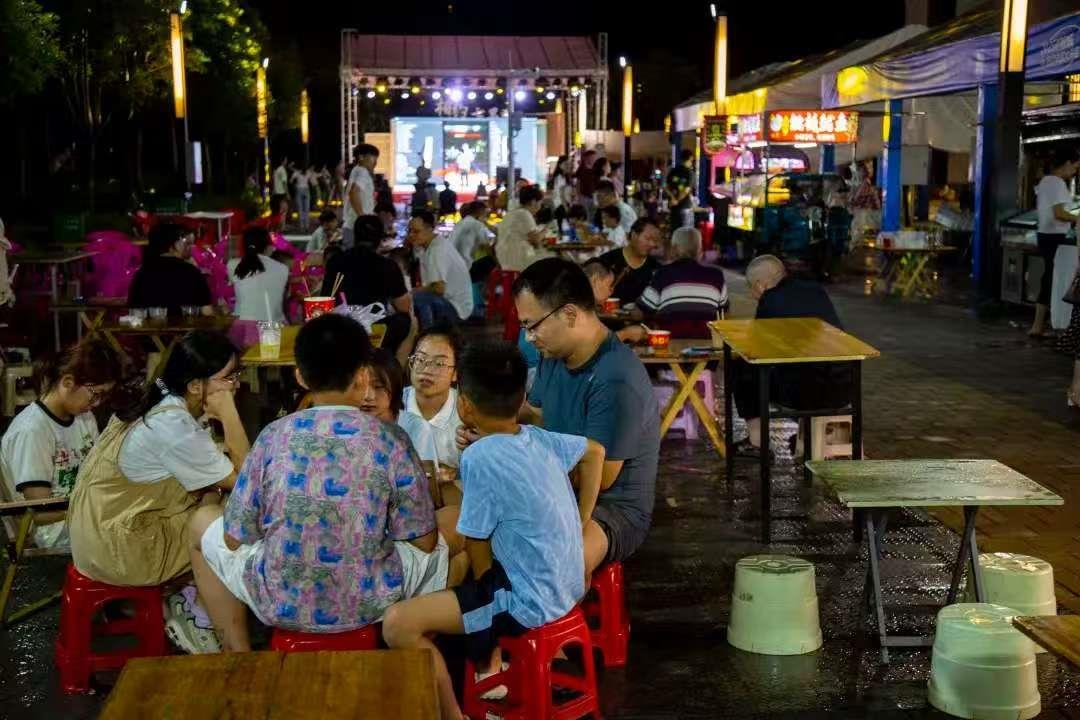 华灯初上,七里湖商业街夜市迎来每日客流高峰,舞台上的K歌表演与湖畔的清凉微风,为夜市平添几分魅力。“90后”创业者苏老板的糖水铺生意红火:“搬到七里湖后,日均营业额从以往在火车站时期的400元提升到现在的600多元,暑期最高峰能突破1000元。”湖畔烧烤摊主陈女士也表示:“最近看比赛的人多,客人比平时多了些,忙时得叫家人来帮忙。”