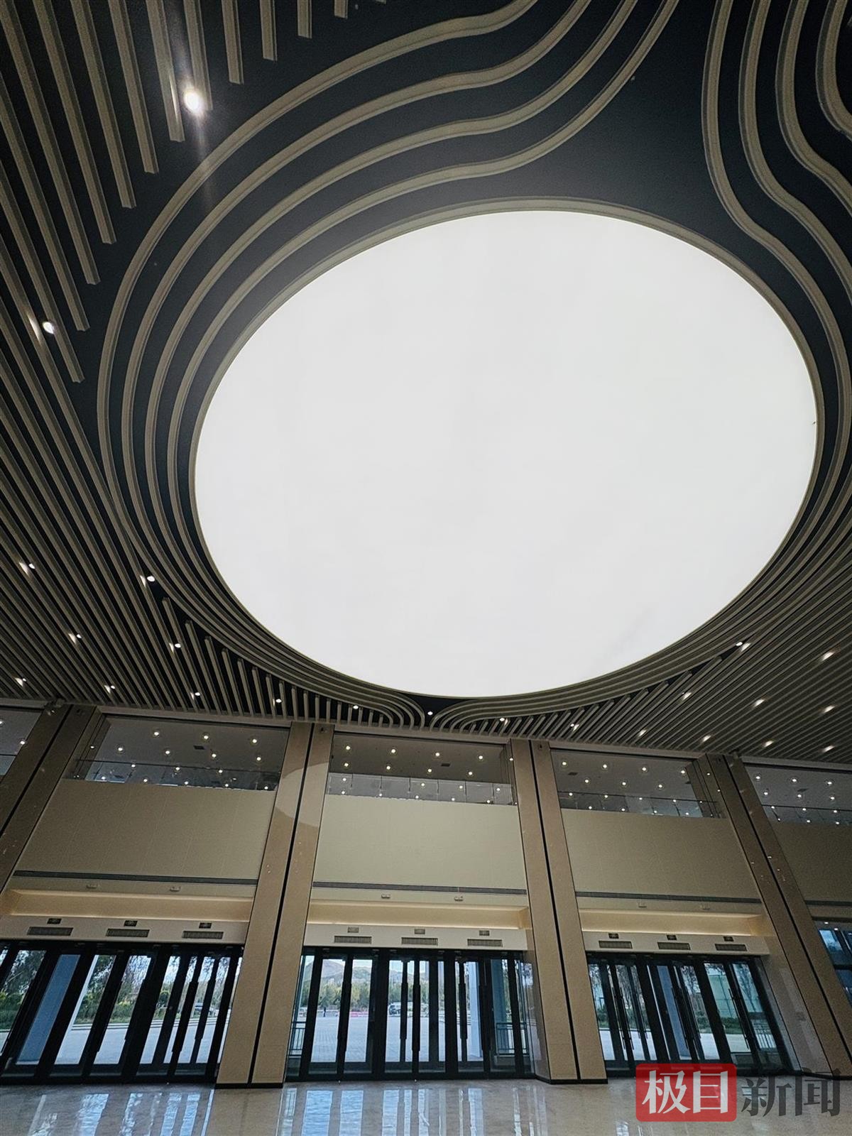 新闻记者现场看到,其设计暗藏巧思:双塔楼外部造型如敞开的“未来之门”,寓意向西亚各国张开合作双臂;一层大厅中央直径14米的圆形照明灯,可随主题变换图案,象征着用双手托举“西域明珠”,点亮丝路商贸新未来。目前,项目室内精装修已进入收尾阶段,招商工作同步稳步推进。