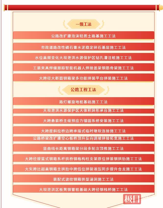 日前,中国公路建设行业协会组织召开2025年公路建设科技创新交流大会,会议对2024年度中国公路建设行业协会评选出的855项公路工程工法进行表彰,其中湖北路桥获15项工法。