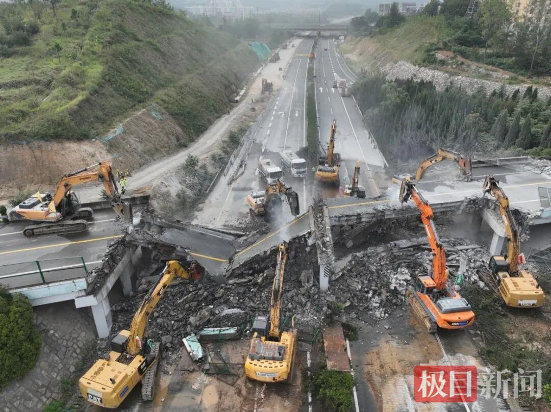 为最大限度减少对群众出行的影响,施工团队采用“12小时封闭集中拆除”模式,8台485型破碎锤、4台325型破碎锤、4台洒水车、2台液压钳、2台装载机等设备提前就位。通过封闭破碎拆除施工,严格遵循“先上后下、先中间后两边”原则,采用“近端强制分流+远端诱导”的交通疏导方案,引导北京方向车辆经麻安高速转京武高速、大悟收费站车辆绕行S243省道,保通员通过现场引导确保群众出行“不添堵”。