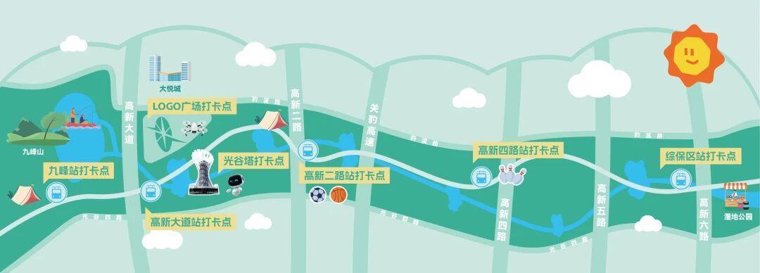 据了解,光谷中央生态大走廊联动光谷空轨五大站点,在7处点位有不同的游玩体验。
