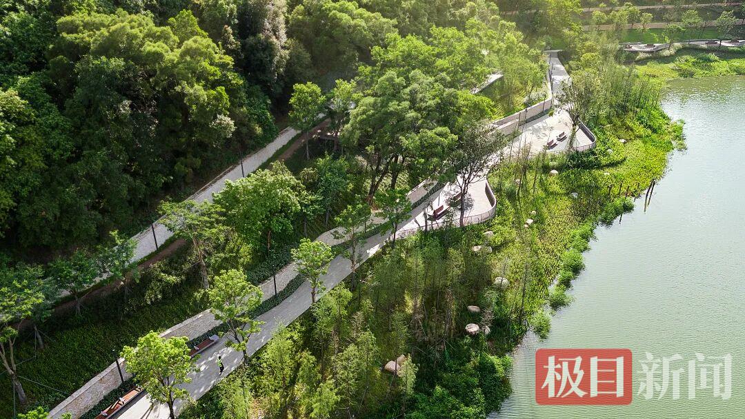 作为践行广东省“万里碧道”总体规划的重要落子,深圳罗湖区“一带两廊三珠”碧道以江河湖库及河口岸边带为载体,统筹生态、安全、文化、景观和休闲功能,打造水清岸绿、鱼翔浅底的自然生态廊道,而罗湖金湖公园则是其中两廊建设中“还库于民”的典型案例。
