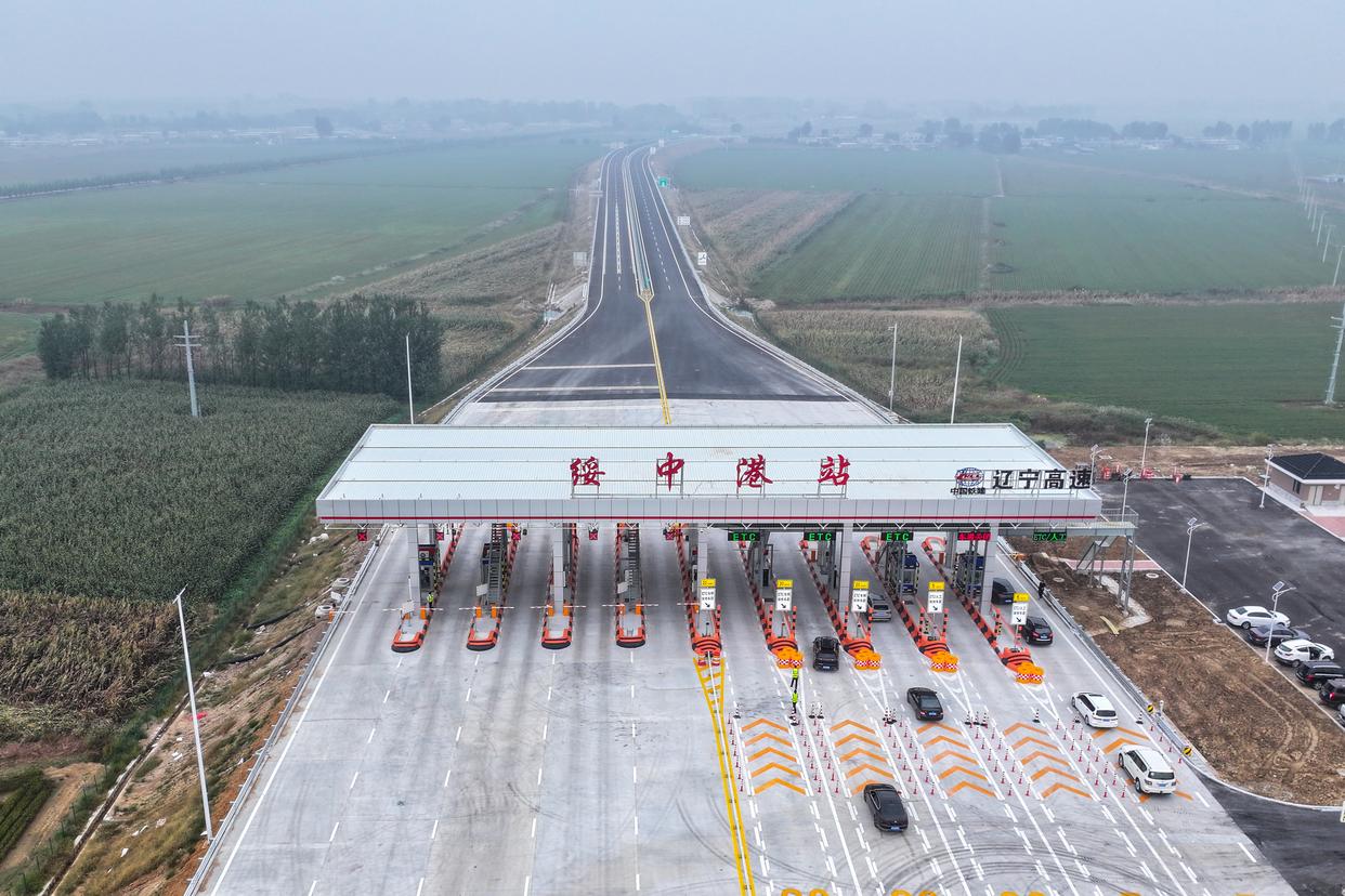 9月27日拍摄的凌绥高速范家站收费口(无人机照片)。新华社记者 潘昱龙 摄