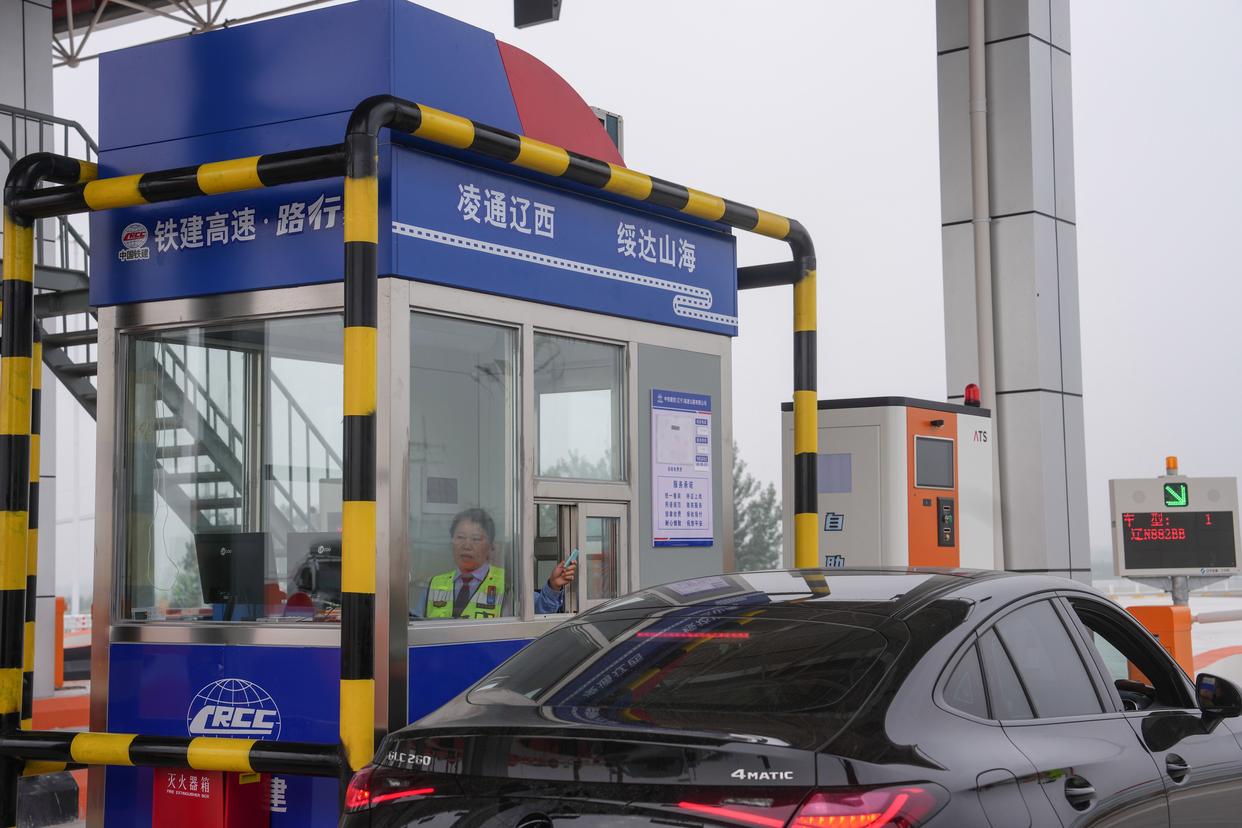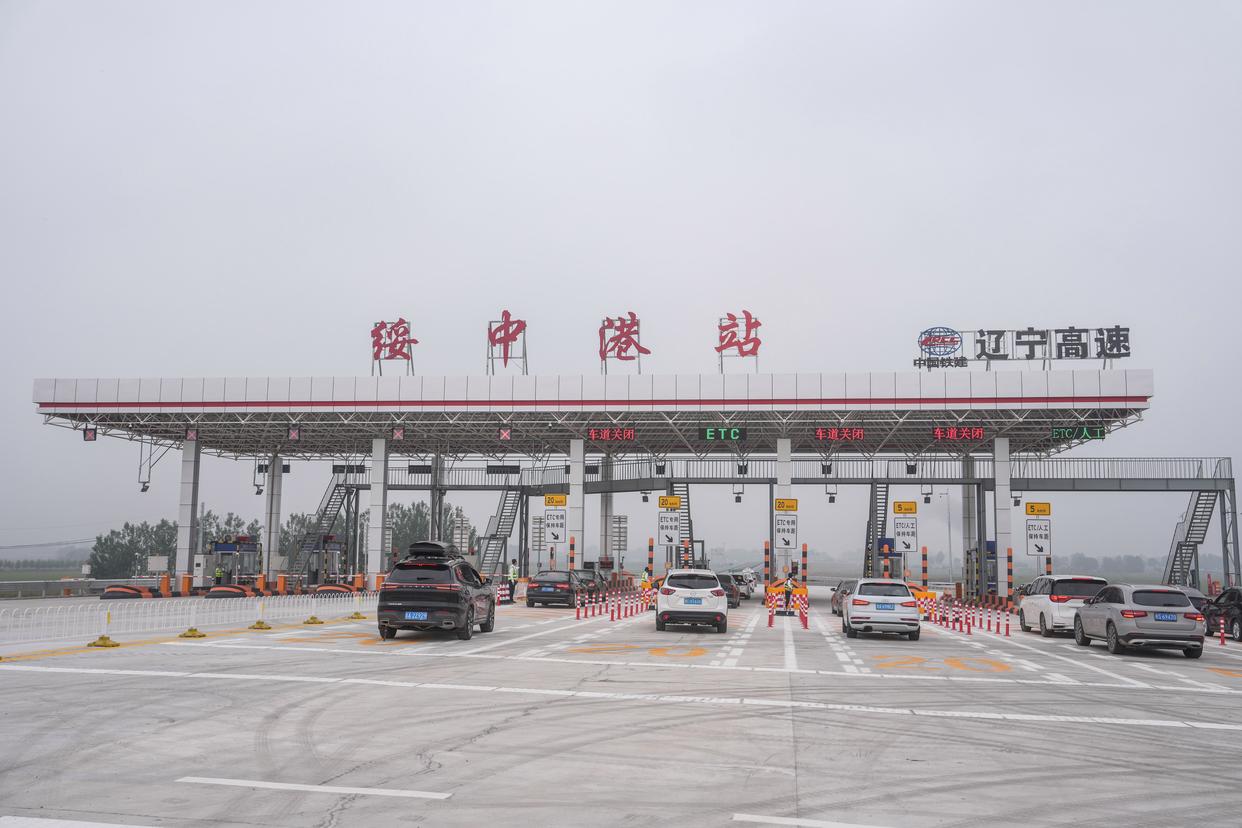 9月27日,车辆从凌绥高速绥中港站收费口进入高速公路。新华社记者 潘昱龙 摄