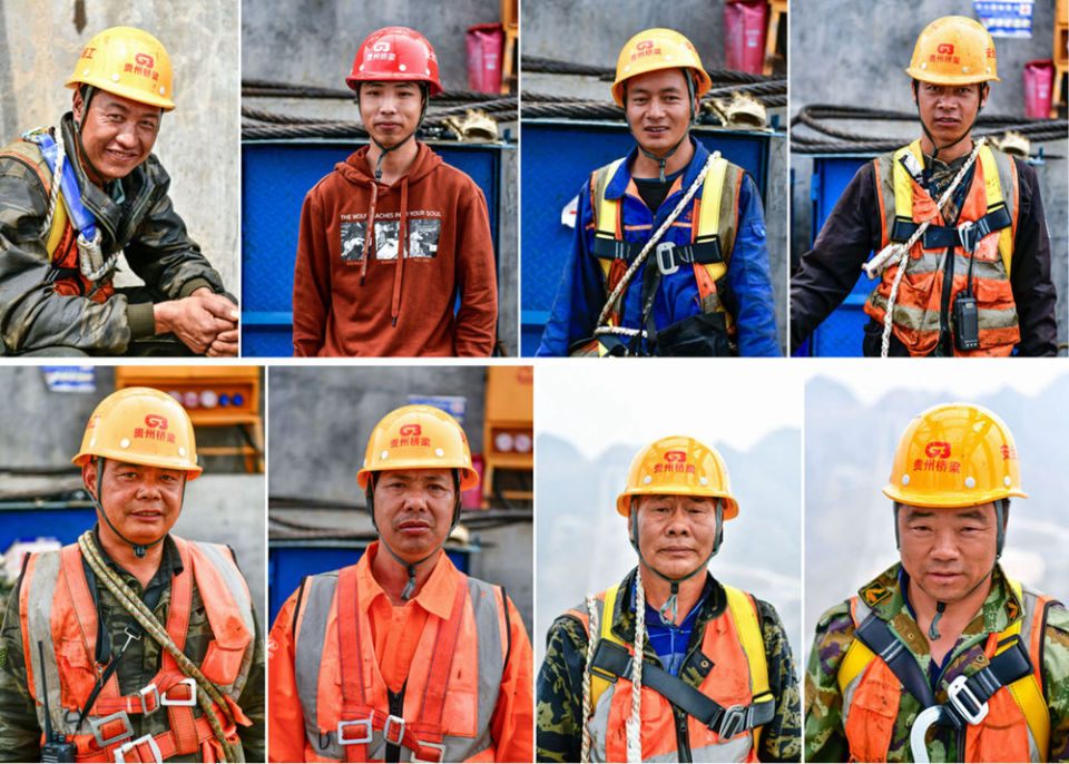 ↑ 2024年3月27日在贵州花江峡谷大桥施工现场拍摄的建设工人群像(拼版照片)。新华社记者 杨文斌 摄