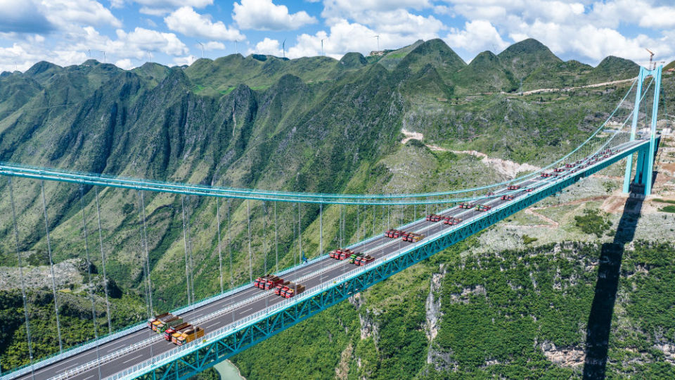 经过三年多建设,新的世界第一高桥——贵州花江峡谷大桥于9月28日正式建成通车。