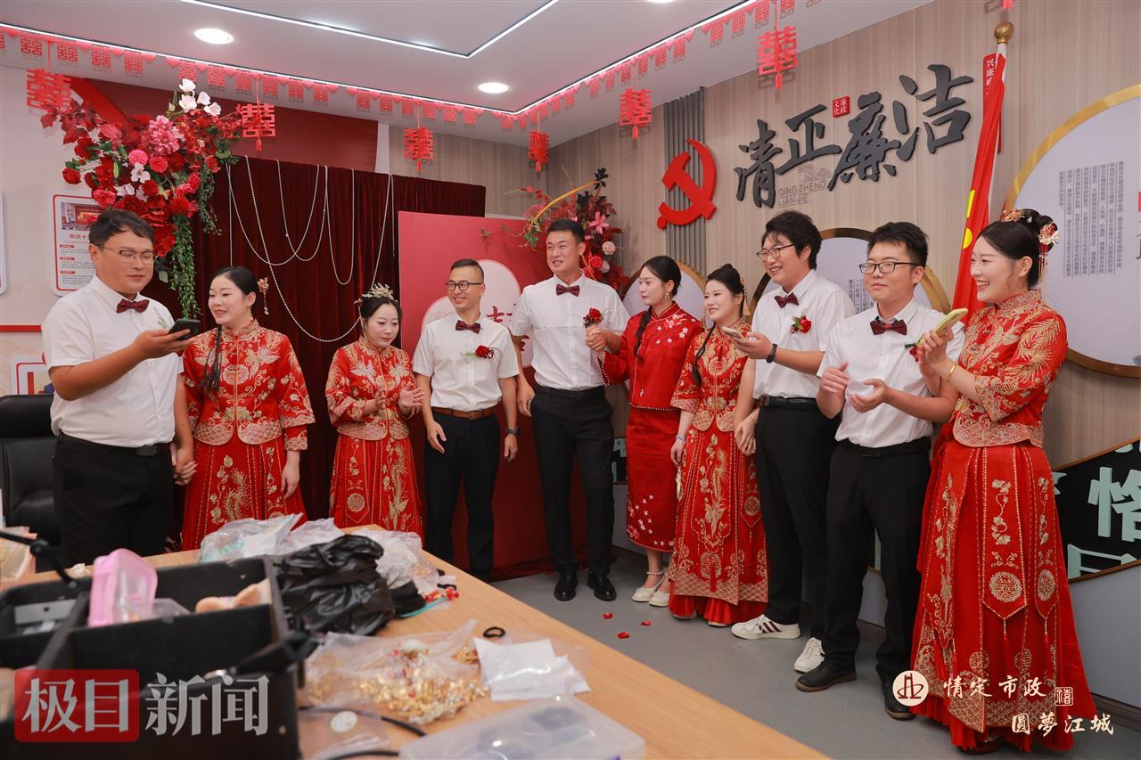 9月28日下午,在武汉城发集团下属市政集团承建的未来一路地标建筑“光谷之珠”前,一场充满传统韵味的中式集体婚礼温馨上演——5对在项目建设中相识、相知、相恋的新人,在此喜结连理,许下相伴一生的誓言。