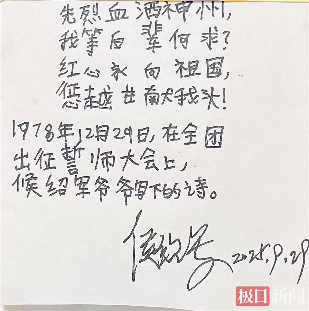 访谈中,侯爷爷特别展示了在战场生死考验中感悟到的人生哲理,寄语青少年要格外珍惜来之不易的和平环境与幸福生活。他勉励同学们:“你们生长在最好的时代,要树立远大理想,勤奋学习,锻炼体魄,将个人成长融入国家发展之中,这便是对历史最好的铭记,对先烈最高的致敬。”