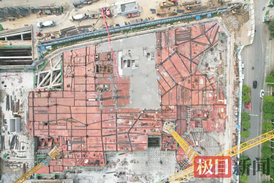 现场,只见塔吊有序运转,机械设备轰鸣作响,中建二局华中公司的建设者们放弃休假,坚守施工一线,全力推进这座双地铁TOD商业综合体的建设进程。