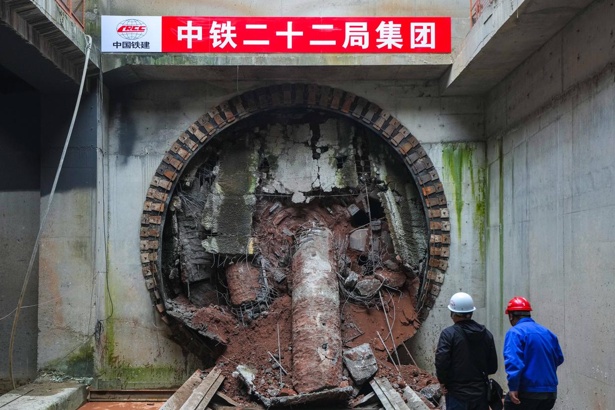 10月15日,盾构机刀盘破岩而出。新华社记者 许畅 摄