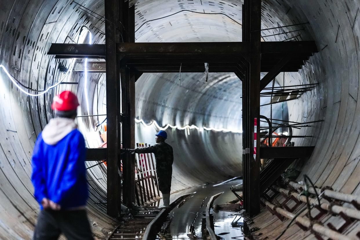 10月15日,施工人员在隧道中进行巡检。新华社记者 许畅 摄