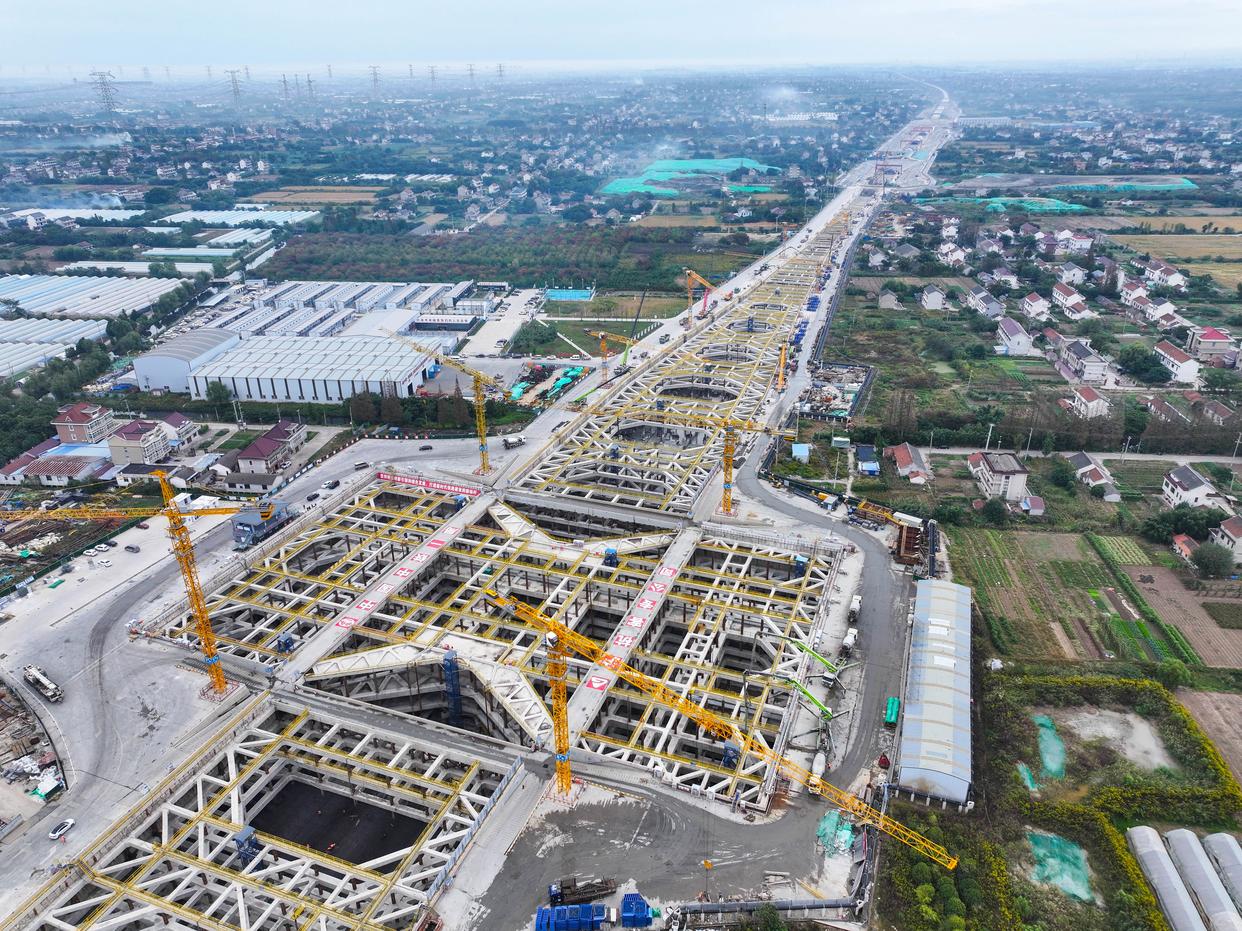 10月30日拍摄的海门北站建设现场(无人机照片)。新华社记者 季春鹏 摄