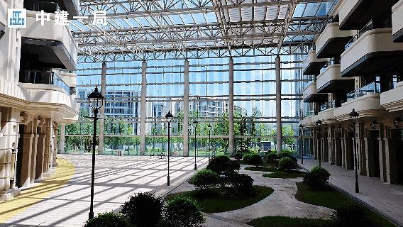 项目教学楼大厅穹顶采用圆形递次设计,最大高度10米、最大跨度25米,由轻型钢结构骨架与定制屋面板构成,采用地面拼接、整体吊装方式,并基于模型提前完成。拼装节点模拟与吊装路径规划,确保结构受力与建筑造型的完美统一,在减少建筑垃圾和能源消耗的同时,最终实现大跨度空间的无柱化呈现。