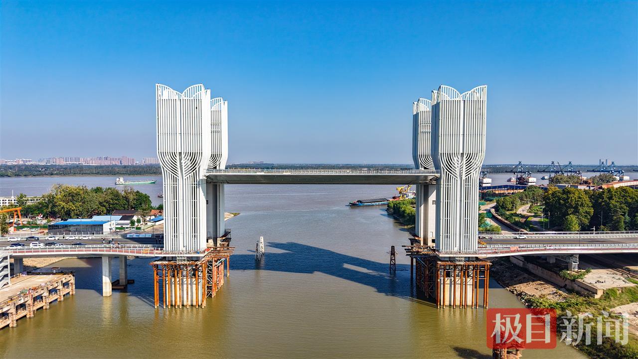 根据设计,该桥距离水面的通航净空高度为8米。“平日,它供车辆通行,桥下也可通过一般船舶;汛期来临和当青山船厂有通航运输需求时,重达2650吨的钢箱梁桥面能够在9分钟快速提升27米,让通航净空达到35米,确保5000吨级船舶正常通行。”这位负责人说。
