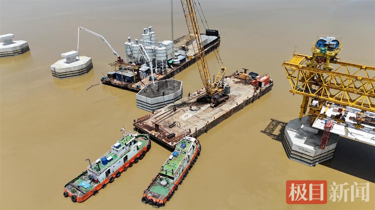 为解决水上混凝土供应难题,项目团队自主研发并改造了一艘5000吨级移动式水上搅拌船,保障了全桥13 万余立方米水上混凝土的供应,显著降低了施工成本。