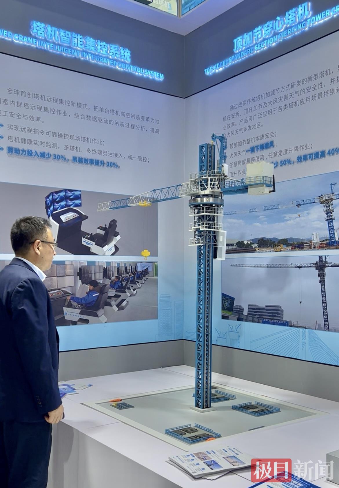 10月31日,在2025国际(武汉)智博会创新产品发布会上,中国建筑先进技术研究院推介了自主研发、国内首创的顶加节穿心塔机,变革传统塔机结构形式及作业方式,发明顶部加节、自动顶升及一键升降等关键技术,着力解决传统塔机在安装拆卸、顶升加节、大风灾害天气等条件下的安全运维问题。