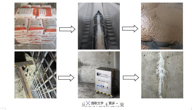 在实际应用中,上述材料曾在中国一冶承建的武汉市青山区21街危旧房合作化改造项目中使用,地下室外墙混凝土全部掺用了水泥混凝土裂缝自修复材料,浇筑施工时间为2024年9月28日—2024年10月29日。