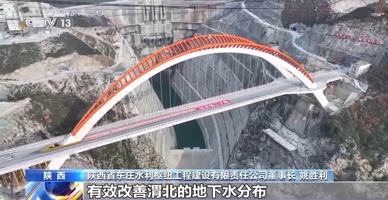 陕西省东庄水利枢纽工程建设有限责任公司董事长 姚胜利:配套的水电站年均可发电2.85亿度左右,节约煤炭消耗量9万吨,减少二氧化碳气体排放量约25万吨。将在上游形成一道长97公里、面积7.3万亩的水面,有效改善渭北的地下水分布与局部小气候。