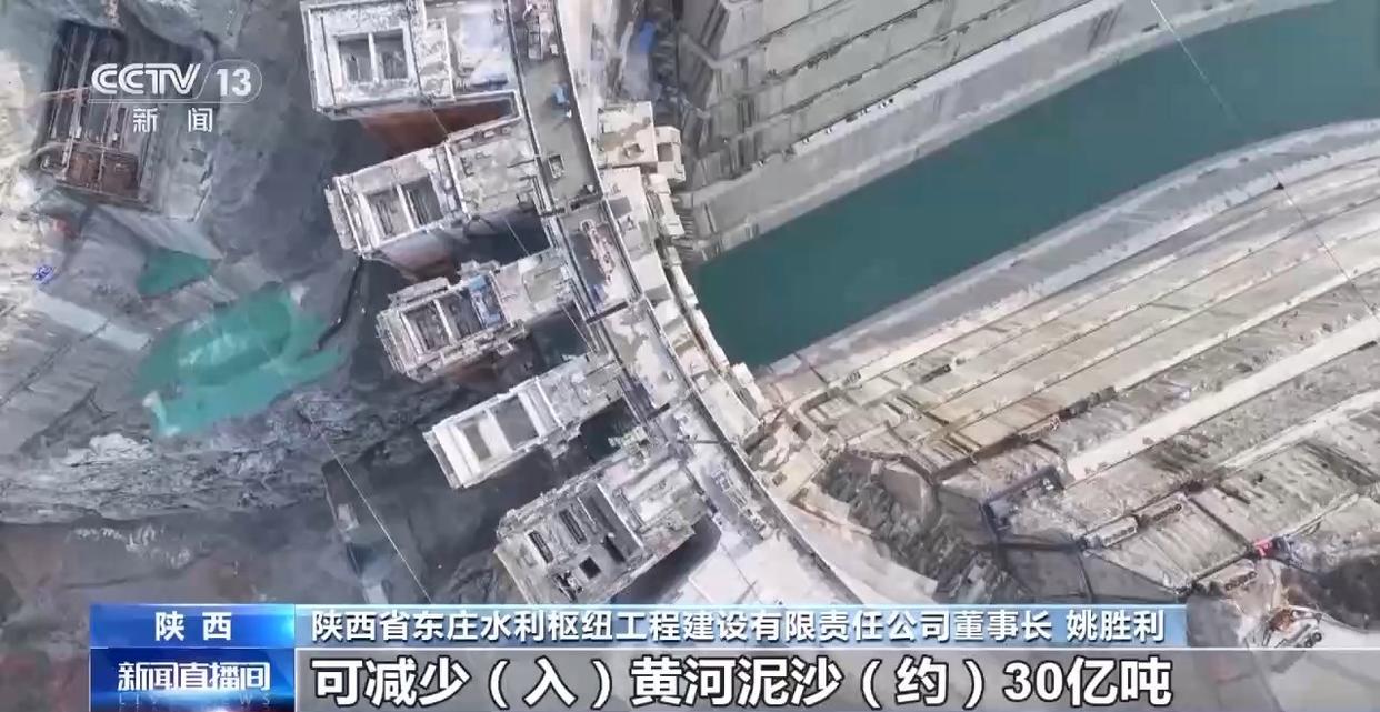 陕西省东庄水利枢纽工程建设有限责任公司董事长 姚胜利:当上游来水小于300立方米每秒时,将其拦蓄在库中;而当入库流量大于300立方米每秒时,敞泄排沙,结合水库泄水和渭河来水,恢复并长期维持渭河下游河道主河床,运行50年,可减少入黄河泥沙约30亿吨、入渭河泥沙约25亿吨。