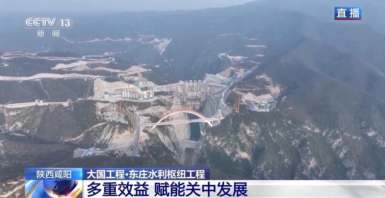 总台记者 许庆之:我现在所在位置是在泾河流域的东庄水利枢纽工程的施工现场,身后是刚封顶不久的水坝。坝体最大垂直高度达到230米,如果按照一般居民楼3米左右的层高来对比,它相当于70多层的大楼。