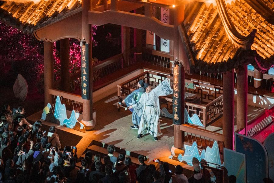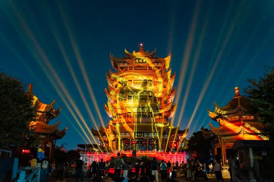 不同于传统夜游,《夜上黄鹤楼》用“光影+演艺”造了个穿越空间:辛氏沽酒、崔李题诗、岳飞点兵的场景就在眼前,你能穿汉服打卡,还能登楼360°看长江灯光秀。用另一种视角体验大江、大湖、大武汉的雄奇与隽美。