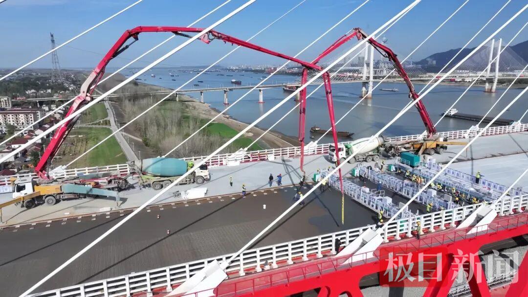 为提高桥面刚度和抗疲劳性能,大桥主桥公路桥面采用了超高性能混凝土组合桥面的形式。公司UHPC团队根据大桥UHPC钢桥面密配筋薄层铺装体系特点,进行了密配筋超宽桥面系的高稳态UHPC配合比优化设计、基于匀质性提升的高品质UHPC规模化生产技术、基于铺装关键参数控制的高质量UHPC大面积施工养护技术等多项技术创新,使UHPC材料多项指标全面符合大桥施工环境特点与设计要求。团队共承担了桥面48000平方米的混凝土铺装工作,助力大桥顺利通车。