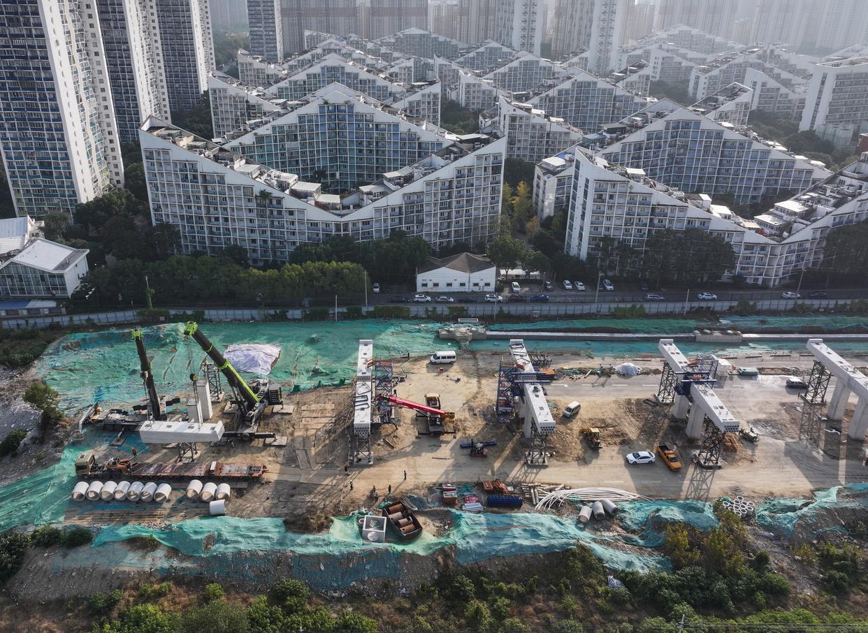 这是11月24日拍摄的312国道无锡凤翔路至广石路段工程11标施工现场(无人机照片)。新华社记者 季春鹏 摄