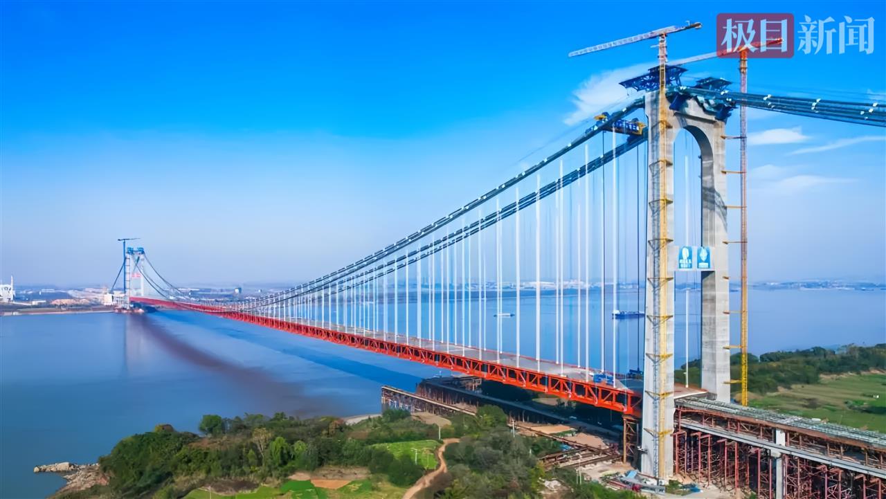 燕矶长江大桥全长2.6千米,主跨1430米,采用四主缆悬索桥结构,是世界首座不同垂度四主缆双层钢桁梁悬索桥,主塔高度分别为195米和203米,为世界同类型桥梁中最高。该项目建成后,将有助于区域打造“公、铁、水、空”综合交通运输体系,强化“武鄂黄黄”都市连绵带一体化发展。