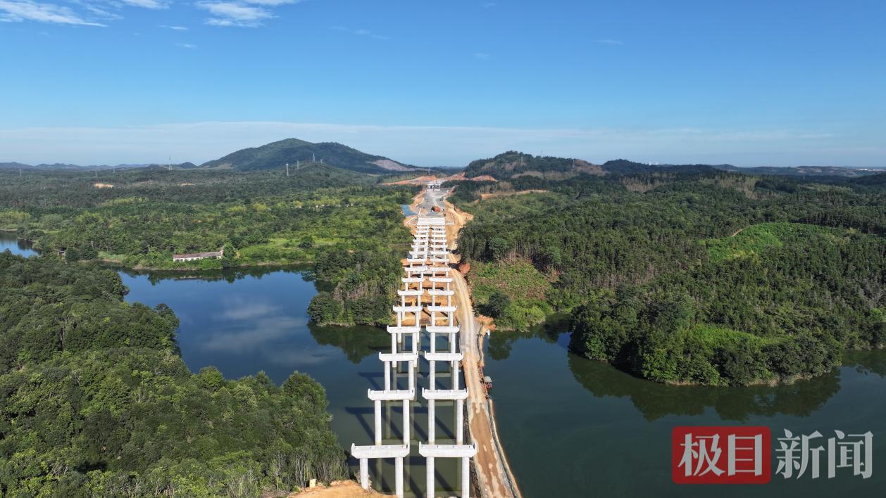 对此,项目团队迎难而上:在溶洞区桩基施工中,创新采用“冲击钻成孔+片石粘土回填复打”工艺,结合超前地质钻探、溶洞预处理与全过程动态监测,有效规避施工风险,交出全线1216根桩基全部评定为Ⅰ类桩的答卷;针对金潭水库大桥施工难题,结合工程实际将原全线栈桥方案优化为“筑岛围堰+局部栈桥”组合工艺,既保证了减少对水库生态的影响,又节约成本近1000万元、缩短工期3个月;为解决涵洞基础钢筋安装易变形的问题,探索使用钢管扣件临时支撑胎架,既保障了安装精度,又实现了胎架重复利用,践行资源节约理念。凭借科学管控与技术创新,项目较合同工期提前10个月完成建设任务,用实际行动诠释了“湖北建造”的硬核效率。