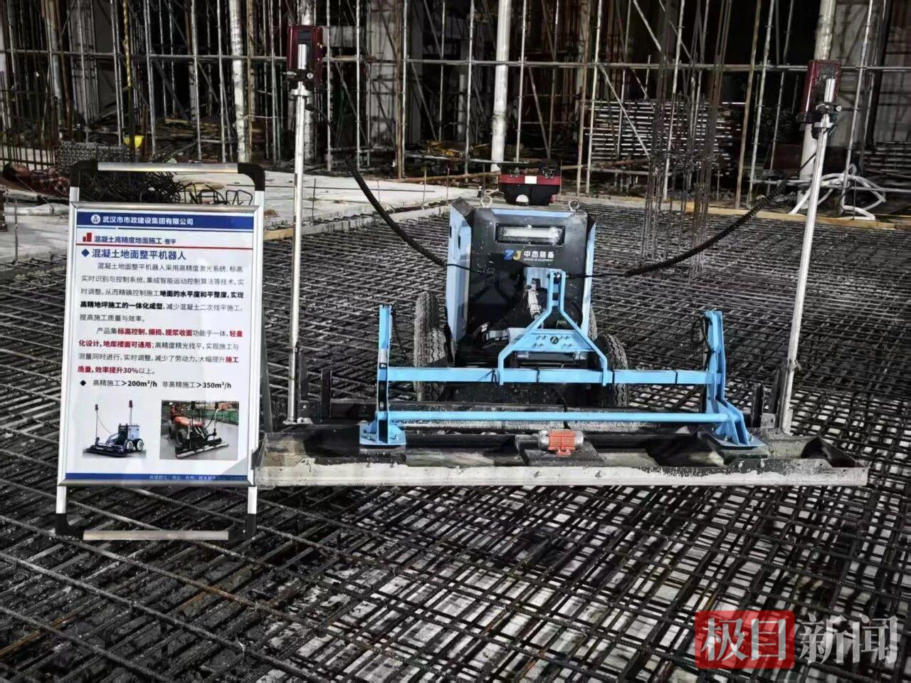 “这就是地面找平机器人的成果,地面平整度可控制在±2毫米以内。”该项目总工指着地下室地面说道,该机器人借助先进的激光测距、传感器等技术,能实时精准测量地面高度差,远超人工找平的精度,为后续的地面装修等工序提供坚实基础;同时,机器人可连续不间断工作,工作效率通常比人工找平高出数倍。
