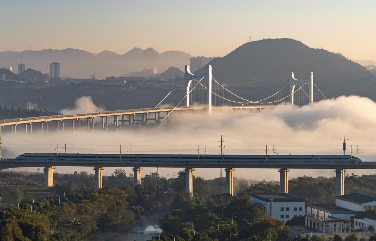 11月28日,盘兴高铁首发列车G5356次从兴义南站驶出。新华社发(龙建睿摄)
