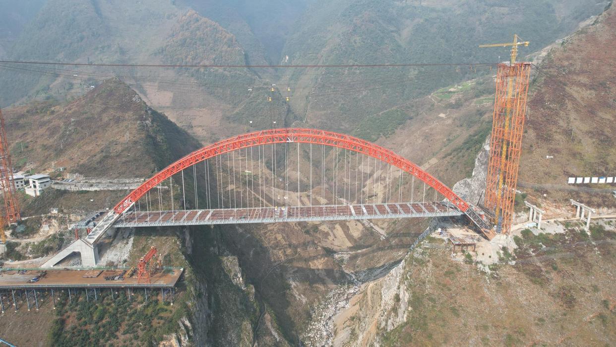 ▲大桥建设者克服大纵深峡谷地形带来的施工挑战