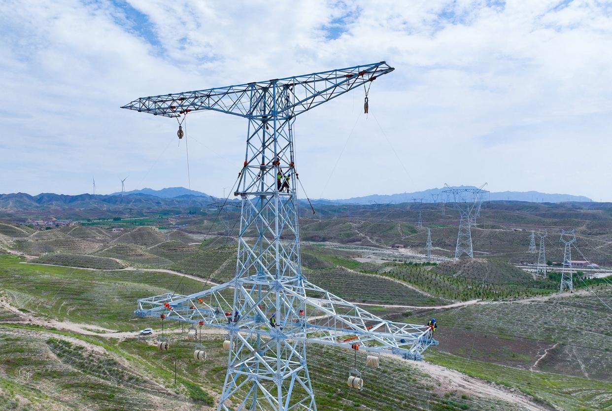 白银至天都山第三回750千伏线路工程(甘肃段)开展导线展放工作。(国网白银供电公司供图)