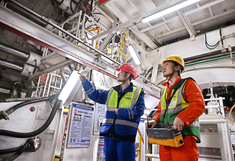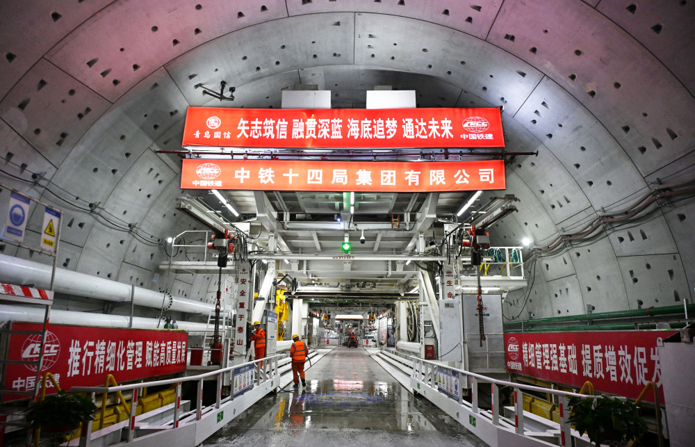 12月15日,中铁十四局建设者在海平面下91米进行施工作业。新华社记者 李紫恒 摄