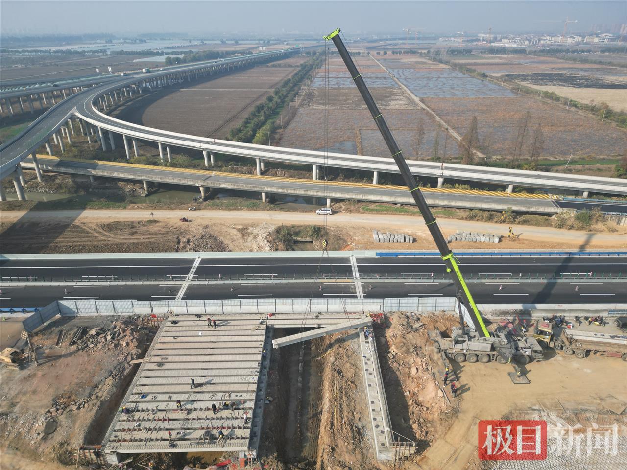 京港澳改扩建5标由中铁大桥局承建,其中灯塔互通小桥采用拆除新建施工方案,自11月4日左幅首桩浇筑起,至12月13日各小桥桥面系施工相继收官。