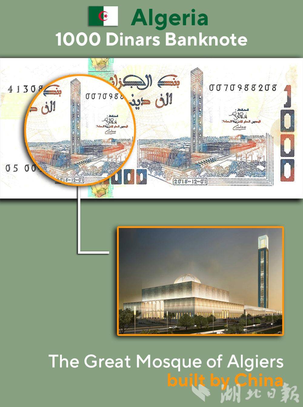 中建三局承建的阿尔及利亚大清真寺被印在1000、2000第纳尔纸币上。