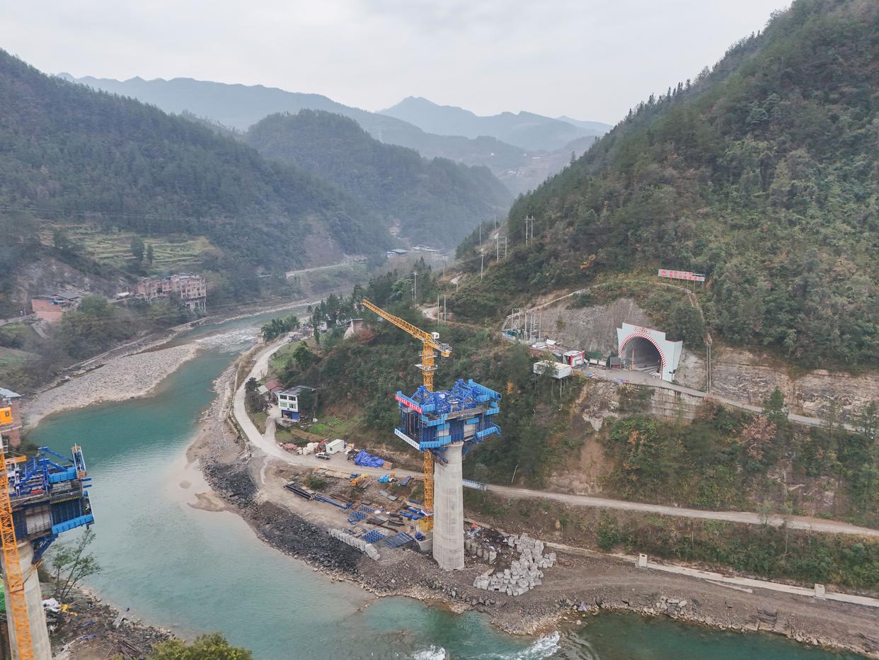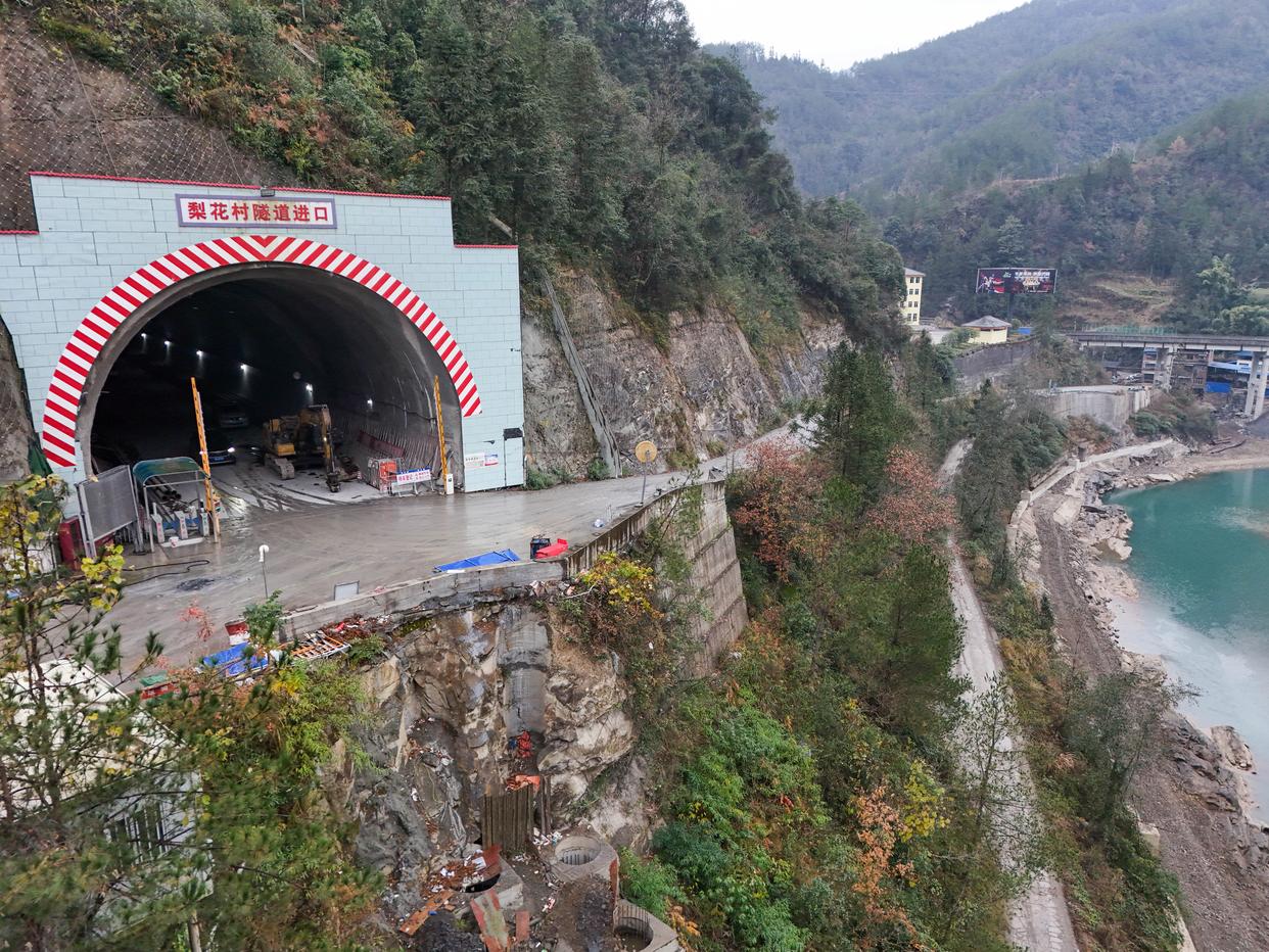 12月20日拍摄的西渝高铁梨花村隧道进口(无人机照片)。新华社记者 王曦 摄