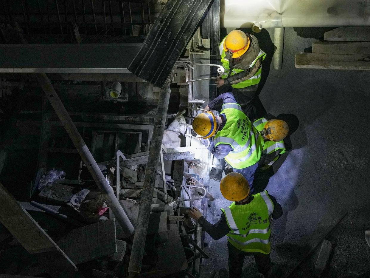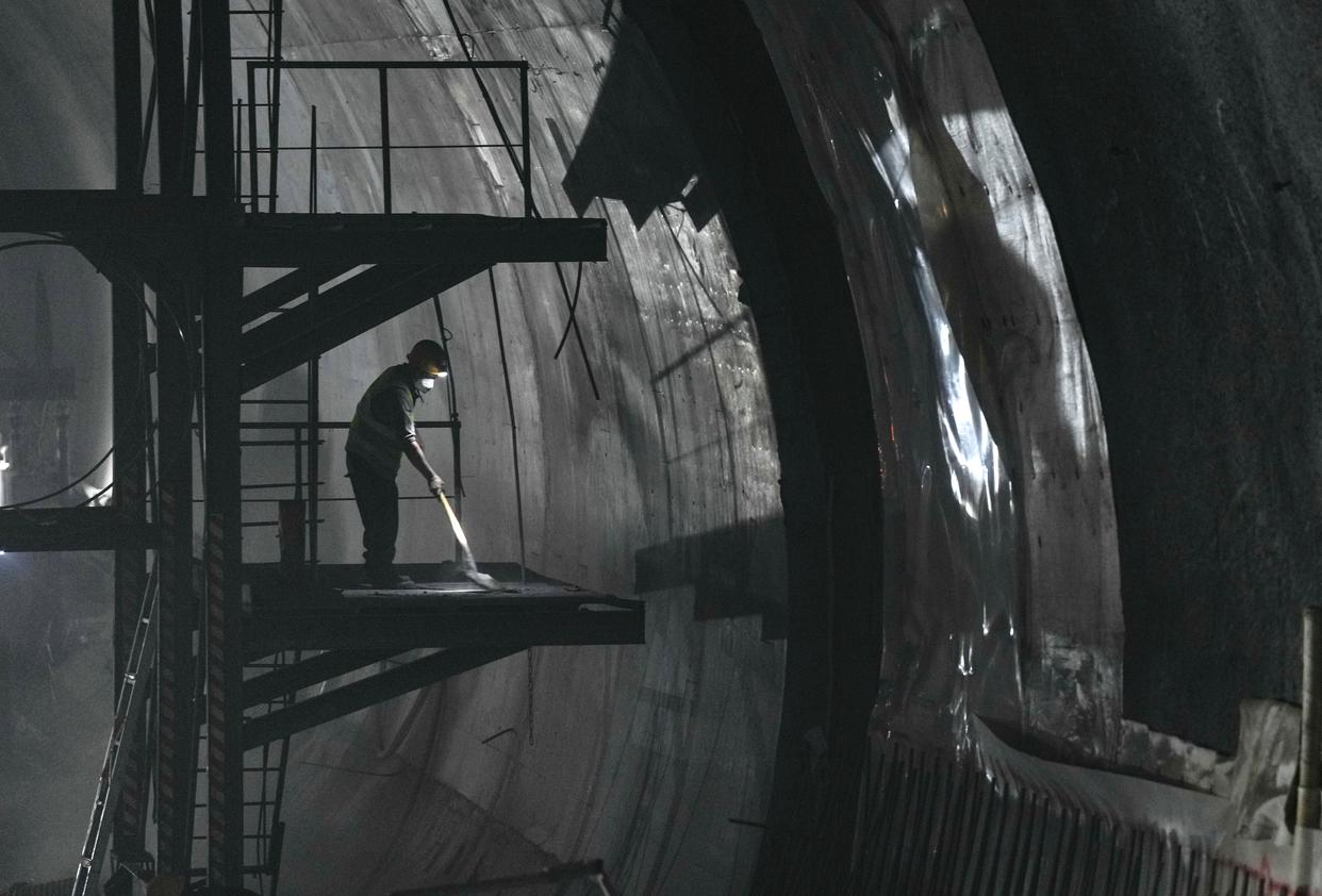 12月20日,工人在西渝高铁梨花村隧道内施工作业。新华社记者 王曦 摄