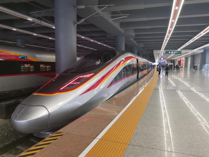图为停靠在广州白云站站台上准备出发的G9785次“复兴号”列车。新华社记者毛鑫 摄