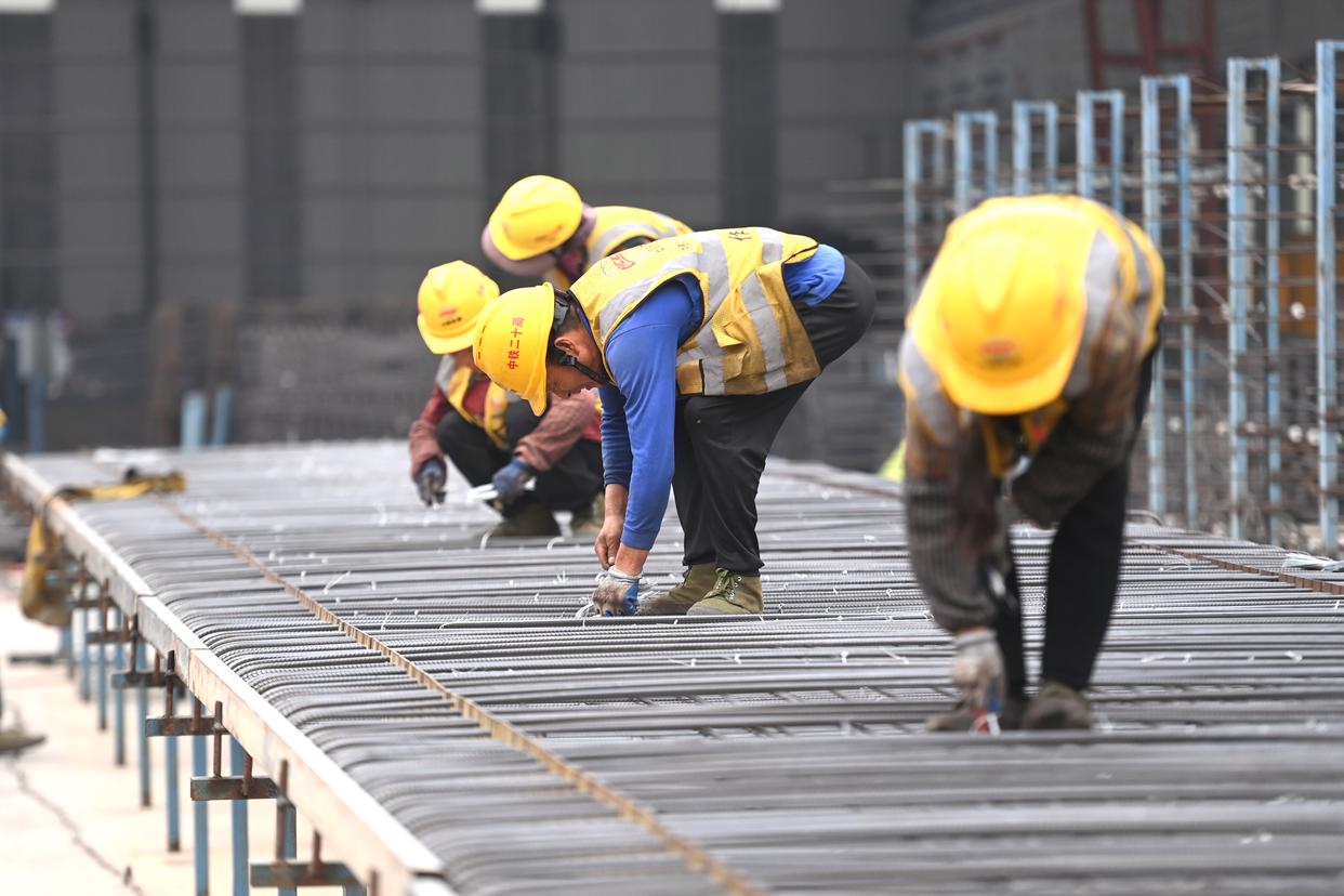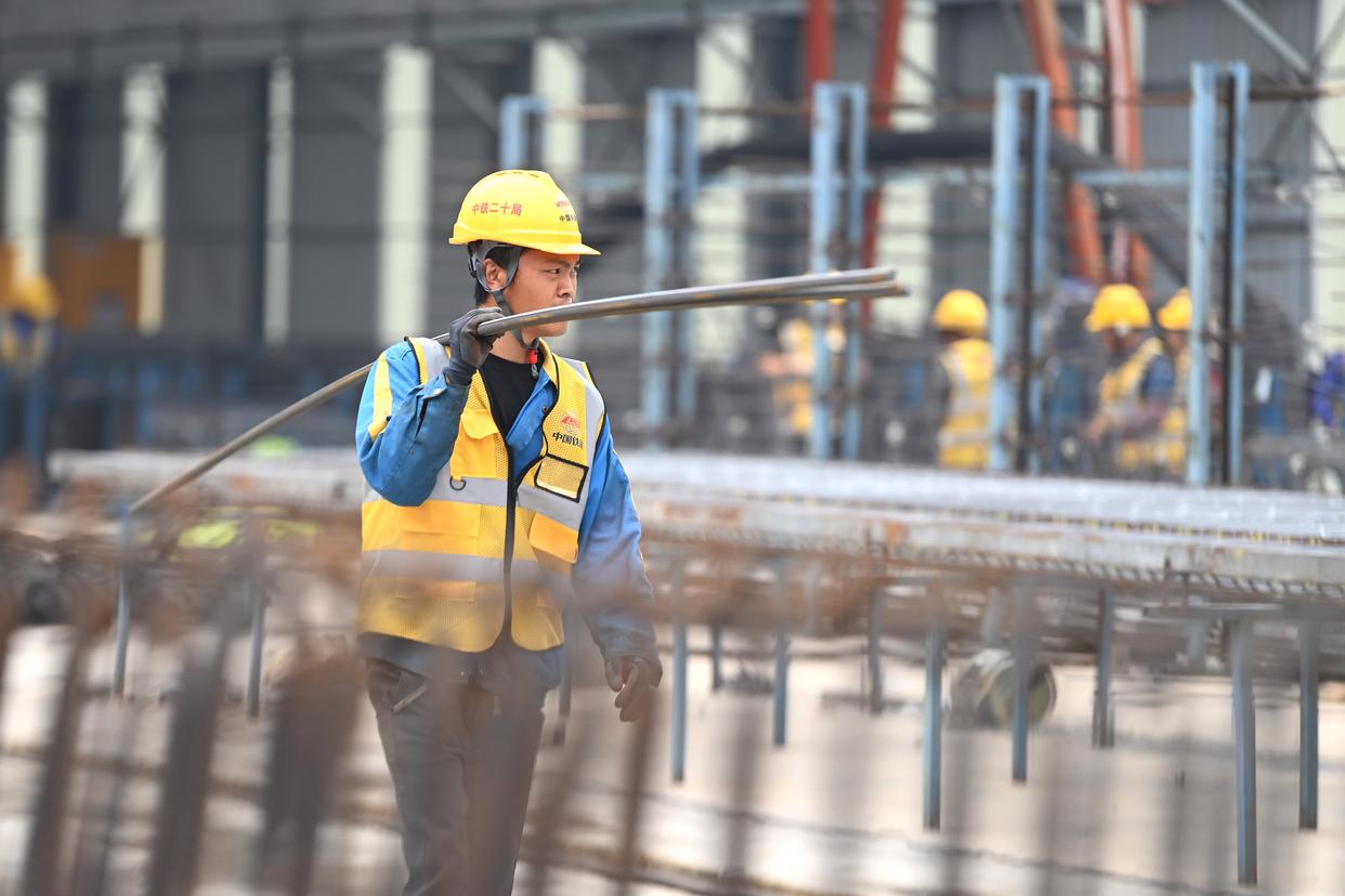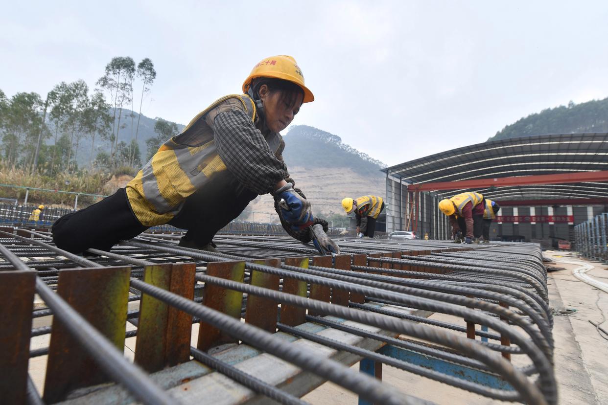 12月23日,中铁二十局的工人在柳州市柳江区三都镇鱼宜高速公路建设工地作业。新华社记者 黄孝邦 摄