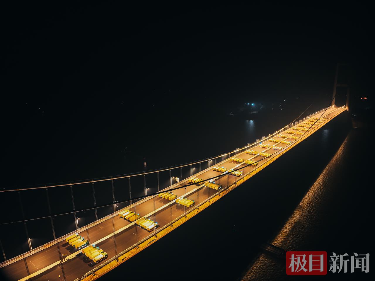 本次荷载试验由中铁大桥科学研究院全程主导,全面验证大桥的结构性能。试验自12月18日晚启动,包含初始状态调查、静载试验和动载试验三个部分,全桥共布设292个应力测点、50余个位移测点及30余个索力测点,对主梁挠度、应变分布、桥塔偏位、吊索索力等关键指标进行实时监测。