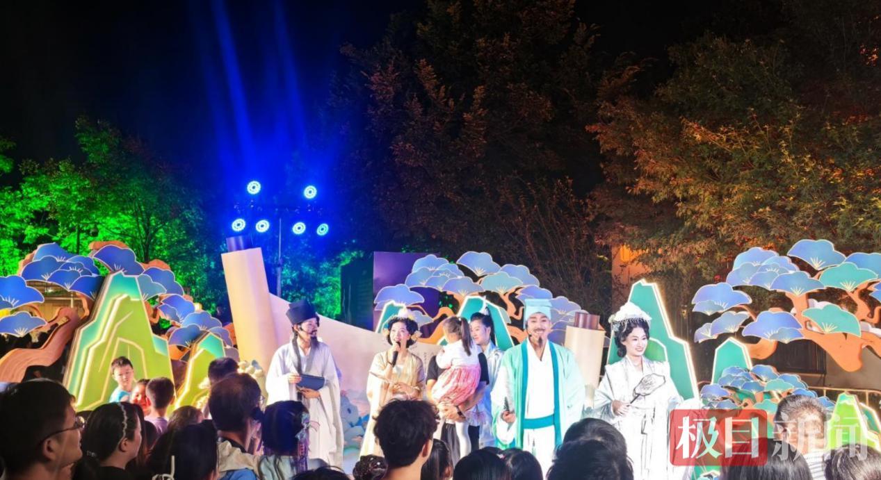 “遗爱湖致力于打造东坡文化圣地,游客不仅可以沉浸式感受东坡文化,还能通过中华传统文化特别是宋朝生活美学的互动体验,增强文化自信。经过2个多月的筹备,夜游活动东坡渡码头沿线的宋韵市集这次得到了形象和功能方面的双重提升。”中建三局城市投资运营公司遗爱湖项目现场负责人王劭勋表示,市集按照宋式经典美学增设了很多打卡点,业态通过优化增加了非遗文化、文创、美食等摊位,NPC互动巡游规模更大、频次更高,穿行市集,宛若梦回大宋。