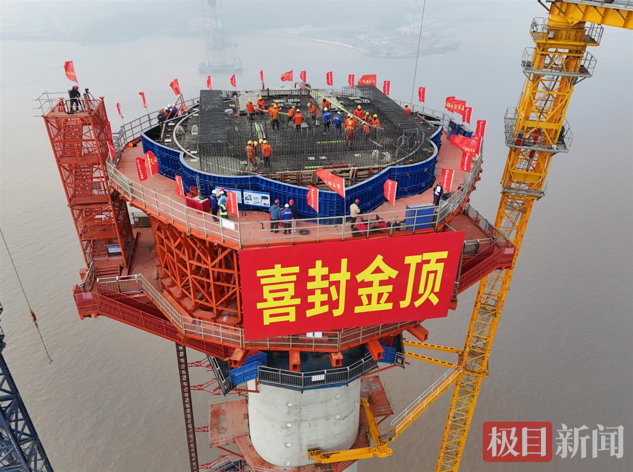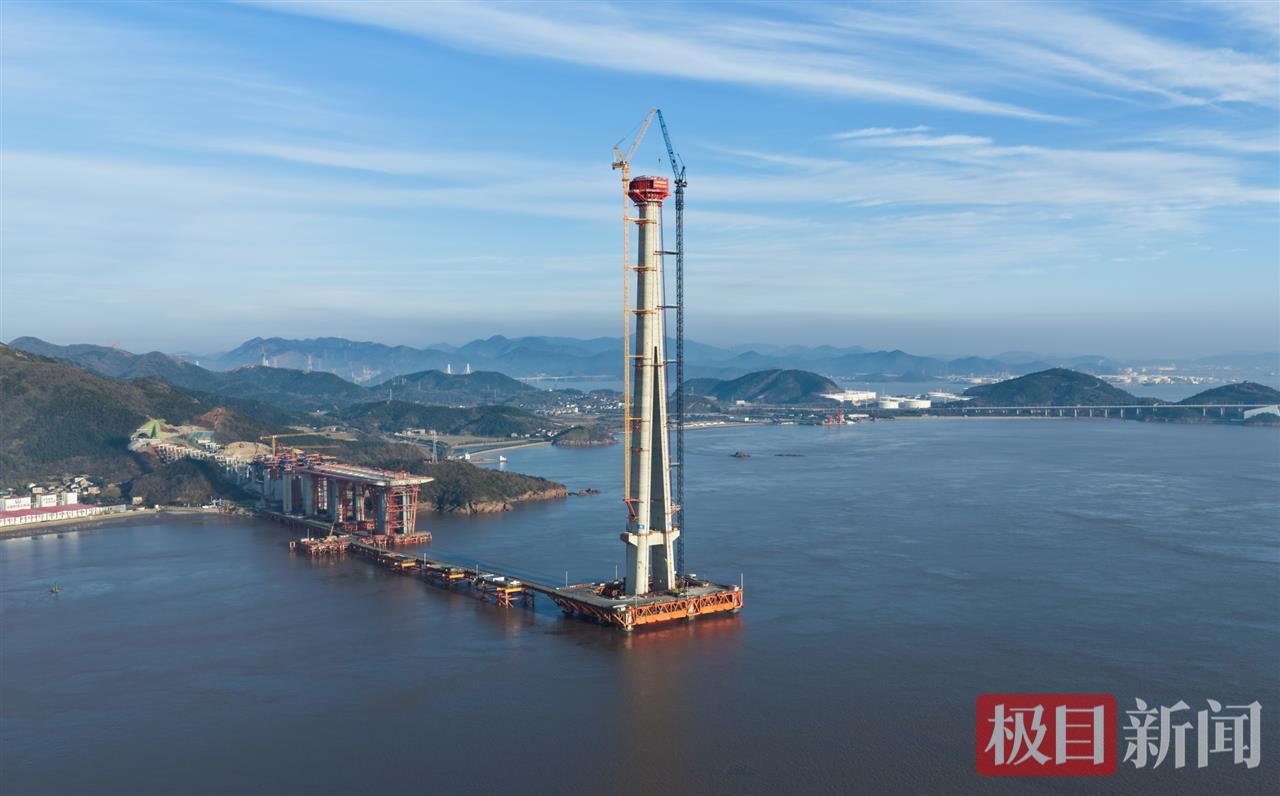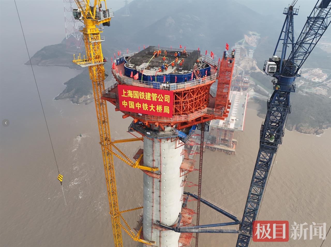 12月30日,随着最后一方混凝土从输送泵车中缓缓注入模板,由上海国铁建管公司建设管理、中铁上投牵头投资、中铁大桥院设计、中铁大桥局承建的甬舟铁路西堠门公铁两用大桥5号主塔封顶,工期比内控计划提前3个月,这也是甬舟铁路全线首座封顶的桥梁主塔。294米高的主塔,相当于100层楼房的高度,刷新了世界海中桥梁主塔高度的新纪录。