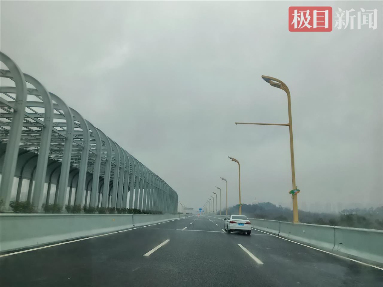 当日8时许,新闻记者驱车,从高架段起始点三环线武黄立交处出发,只见沿线的双向6车道路面平整,视野开阔,不少得知通车的车主也尝鲜上高架体验,在途径临近居民区的高架段路面时,高架上安装了多处声屏障设施。