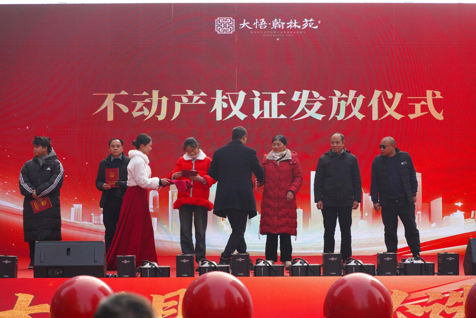 1月2日上午,孝感市大悟翰林苑售楼部前彩旗飘扬、人声鼎沸。“筑梦新大悟,安居大悟县”翰林苑高品质住宅开盘仪式在这里隆重举行。现场进行了精彩文艺节目表演、武汉工贸职业学院教授楼交付仪式、不动产证发放仪式,知名歌手乌兰图雅、金波等亲临助阵,与数千名市民共同见证这一品质人居启幕时刻。该活动是“下一站·孝感北”2026迎新嘉年华暨乐购大悟系列活动之一。