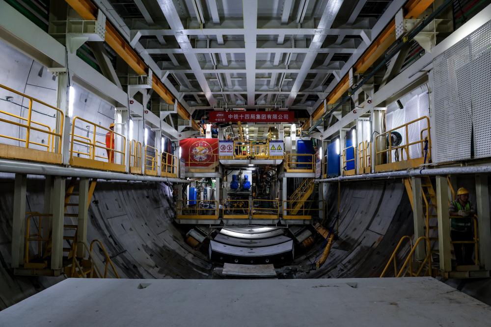 1月6日,中铁十四局施工人员在隧道内吊装管片。新华社记者 毛思倩 摄